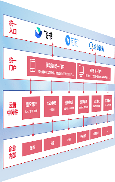 对协作平台提供支持服务,,,支持企业应用与协作平台对接,,,,包含组织同步、、消息集成、、、、待办集成等。。。。支持目前主流的协作平台:钉钉、、、、企微和飞书。。。